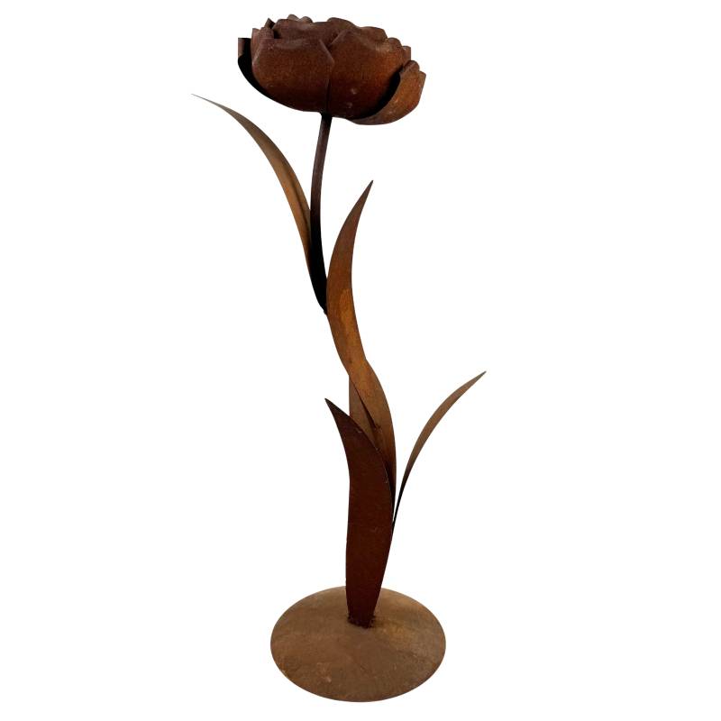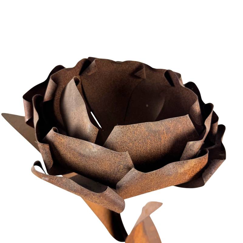 Ajouter une touche artistique et intemporelle à votre jardin avec cette décoration en acier oxydé au design inspiré d'une rose.