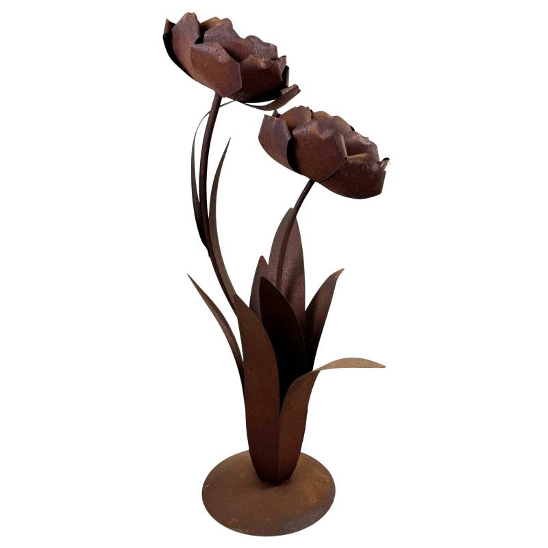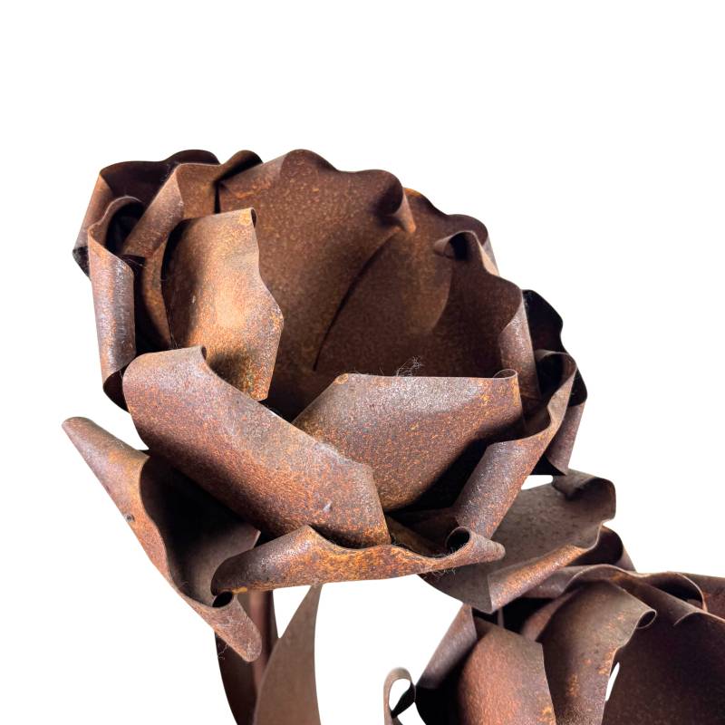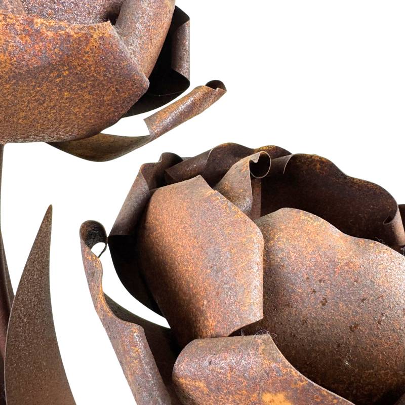 Ajouter une touche artistique et intemporelle à votre jardin avec cette décoration en acier oxydé au design inspiré de roses.