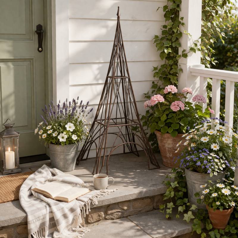 Installez la structure directement en pleine terre, au cœur d’un massif ou sur une pelouse. Plantez vos grimpantes à sa base et guidez-les au démarrage pour une croissance harmonieuse.