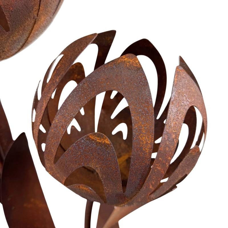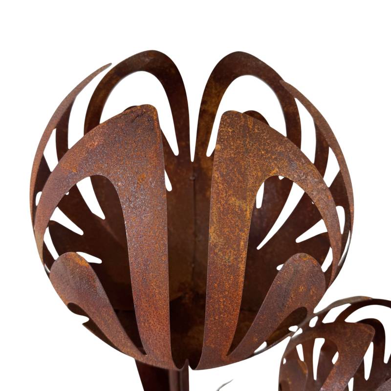 Sa finition effet rouille lui confère un aspect naturel et authentique, parfait pour une décoration au style industriel, végétal ou moderne. Cette sculpture devient un véritable élément décoratif sculptural.
